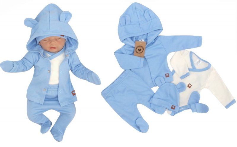 Sada do porodnice 5D, body, polodupačky, kabátek, čepička, rukavičky Z&Z