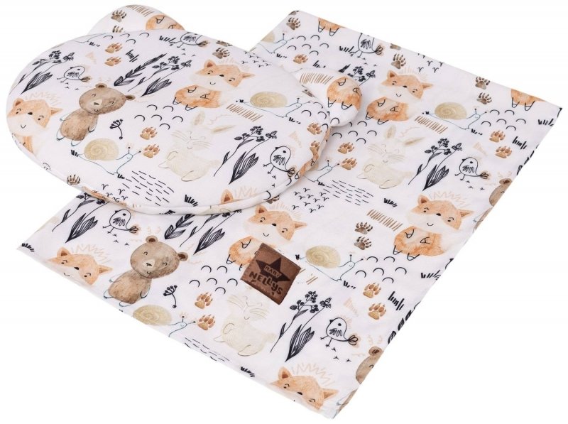 Sada do postýlky, bambusová 2D - dečka + polštářek, Bamboo Happy Animals, bílá