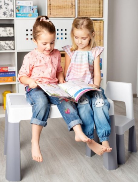Stolek se dá otevřít, kde si děti mohou schovat kostičky nebo menší hračky.