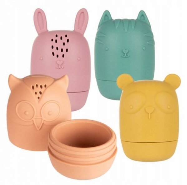 Sada 4 roztomilých hraček do vany v různých barvách a texturách zpříjemní každou koupel. Otevřená struktura hraček umožňuje důkladné umytí a vysušení hraček uvnitř, zabraňuje hromadění nečistot a tvorbě plísní. Je to pohodlné a velmi hygienické řešení vytvořené s ohledem na zdraví a bezpečnost dětí. Sada hraček do vany vzbuzuje u dítěte zájem a učí kreativnímu myšlení díky mnoha možnostem hry. Hračky se dají otevírat a horní a spodní díl lze libovolně kombinovat, díky čemuž rozvíjí dětskou fantazii a kreativitu. Naplněné vodou po zmáčknutí stříkají vodu - procvičují přesnost a udělají spoustu zábavy. Jsou vyrobené z měkkého silikonu bez BPA, lze je použít jako kousátka pro děti.