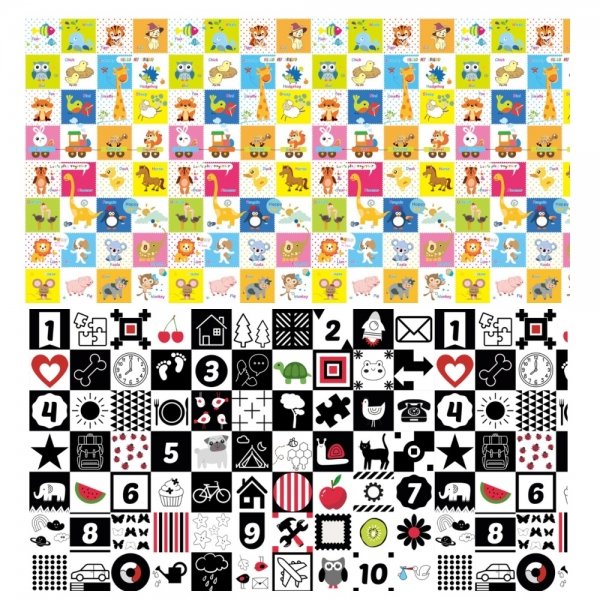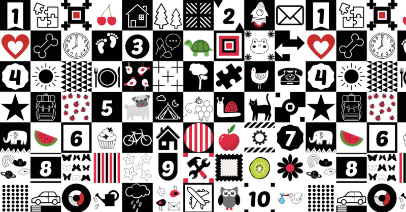 Obrázky s černobílými kontrastními vzory je speciálně navržen pro nejmenší děti - novorozence a kojence. To jsou barvy, které jsou pro ně nejzajímavější.