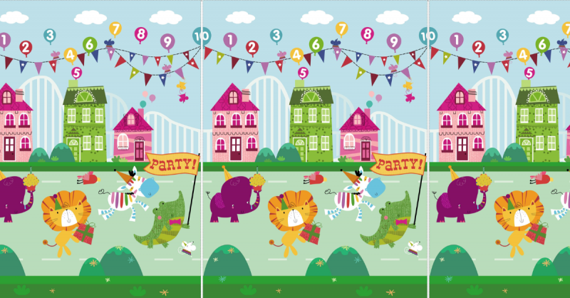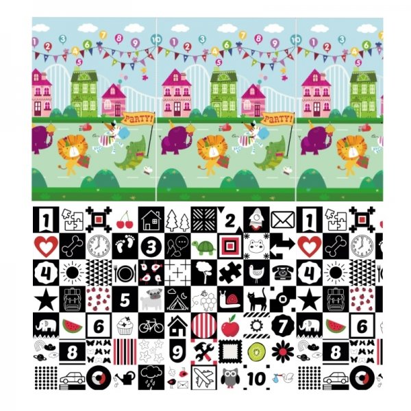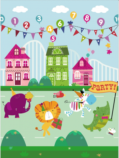 Intenzivní barvy a radostný průvod zvířátek na PARTY podložce zajistí skvělou zábavu a bude pěkným doplňkem výzdoby dětského pokoje.