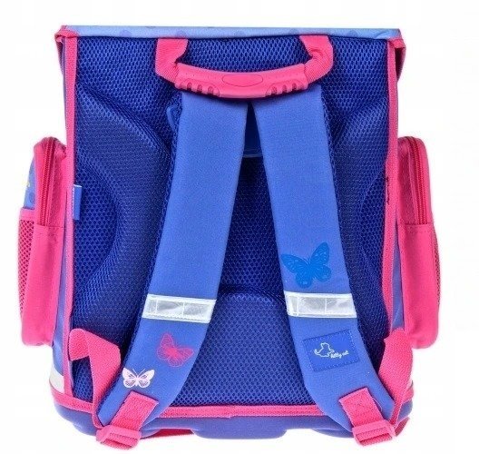 pohodlné. Lehká a vyztužená konstrukce drží tvar. Aktovka je vyrobená s odolného materiálu, dno je vyztužené a potažené gumou, která chrání před nečistotami a vlhkosti. Na přední straně a po bocích jsou všité reflexní prvky pro větší