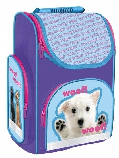 Školní dětská aktovka s motivem Pejska. Funkční pohodlná aktovka disponuje velkou vnitřní kapsou na zip, jejíž součástí je organizér, takže se sešity a knihy skvěle vejdou. Dále obsahuje průhlednou kapsičku na vizitku dítěte. Z vnější