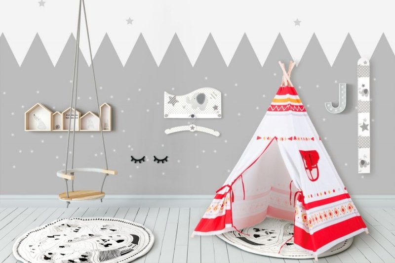 - praktická taška pro všechny prvky - také v indickém motivu, které odpovídají celku. Díky tašce je snadné vzít s sebou svůj teepee, například na dovolenou, na zahradu.