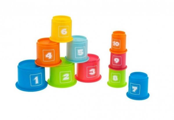 Sada obsahuje 10 očíslovaných kelímků různých velikostí a barev.