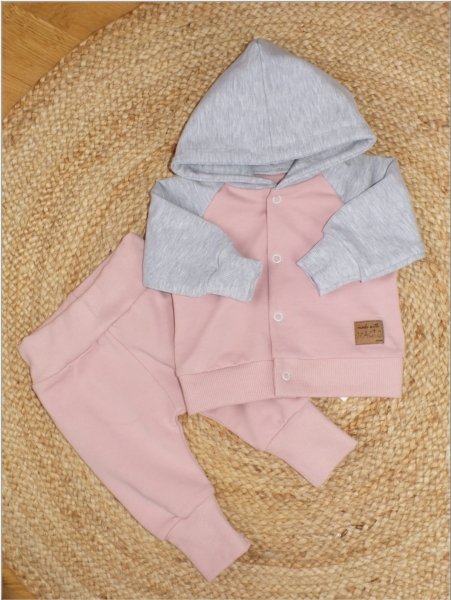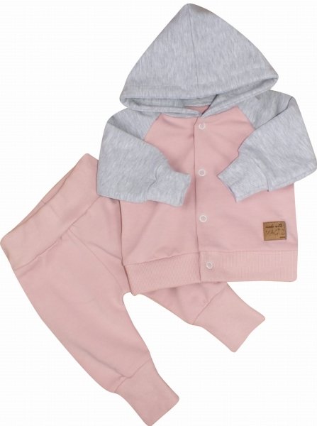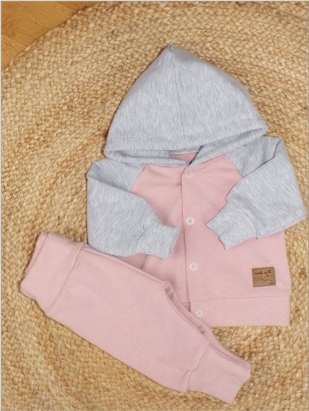 Sada obsahuje: Mikinu a tepláčky. Sportovní střih se hodí na každý den. Mikina má zapínání na cvočky. Kalhoty mají široký pas a pohodlné manžety.