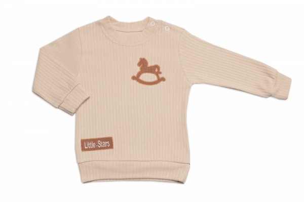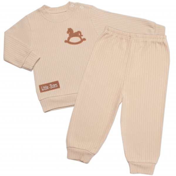 Tepláková žebrovaná souprava, Horse 2D, bavlna, béžová - 74 (6-9m)