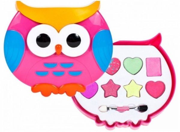 Sada obsahuje: oboustranný štěteček, 8 barev očních stínů, krabička v podobě sovičky.