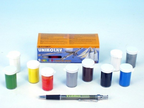 Unikolky modelářské barvy sada 9 barev + matný lak zdarma v krabičce
