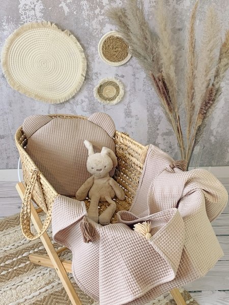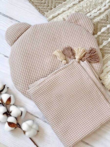 Vaflová sada do postýlky, 2D, Baby Nellys, 75x100 cm 38x33 cm, Medvídek - cappuccino