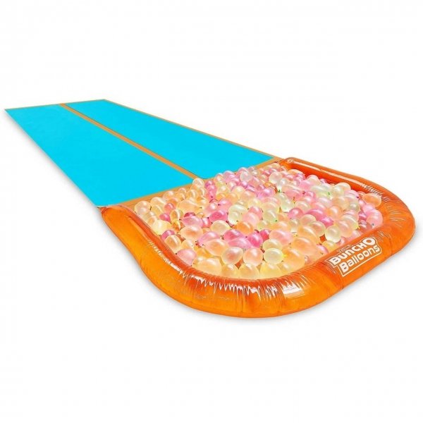Příprava k použití a umístění na zahradě zabere jen pár chvil. Uprostřed skluzavky je vodní stěna, zatímco malý vodní rezervoár na konci skluzavky zaručuje úžasné cákání, které udělá radost všem účastníkům hry. Součástí skluzavky je 165 vodních samozavazovacích balónků, které lze velmi rychle naplnit. Díky inovativní technologii O-kroužků a schopnosti rychlého plnění se rozlučte se stresem a nepořádkem při plnění jednotlivých vodních balónků a užijte si zábavu.