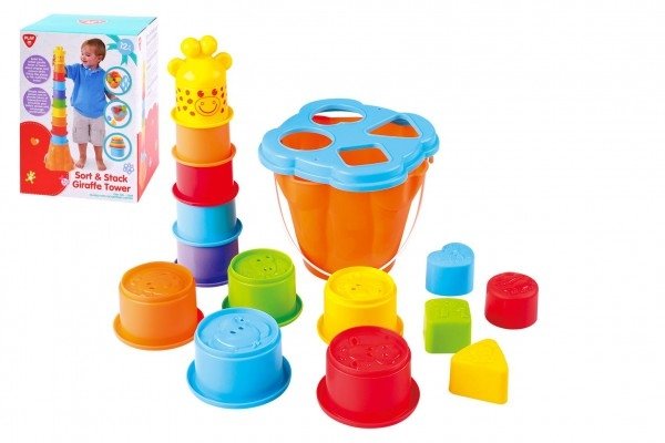 Vkládačka + kubus pyramida žirafa 2v1 plast v krabici 16x22x16cm 12m+