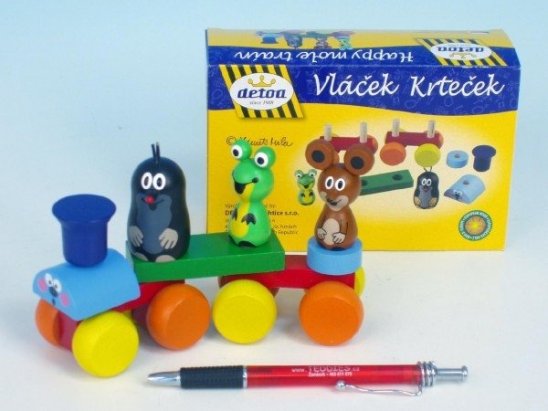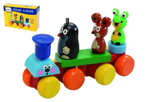 Vlak Krtek dřevo 15cm v krabičce.