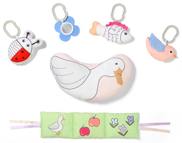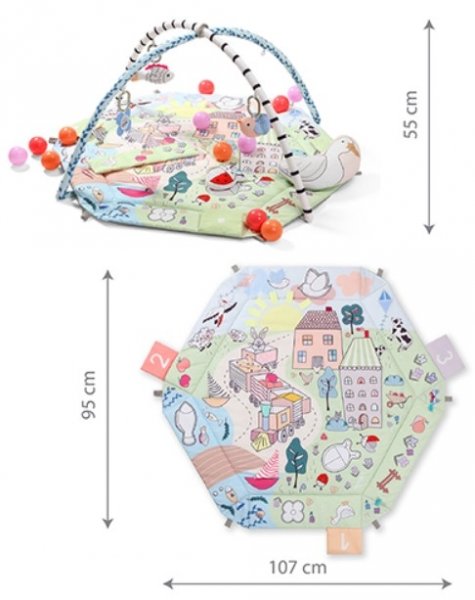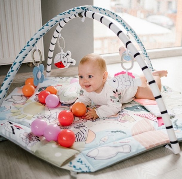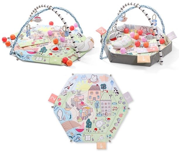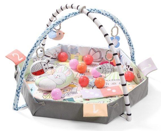 Zahrnuta: podložka, pohyblivé oblouky, 5 závěsných hraček, odnímatelný polštář.