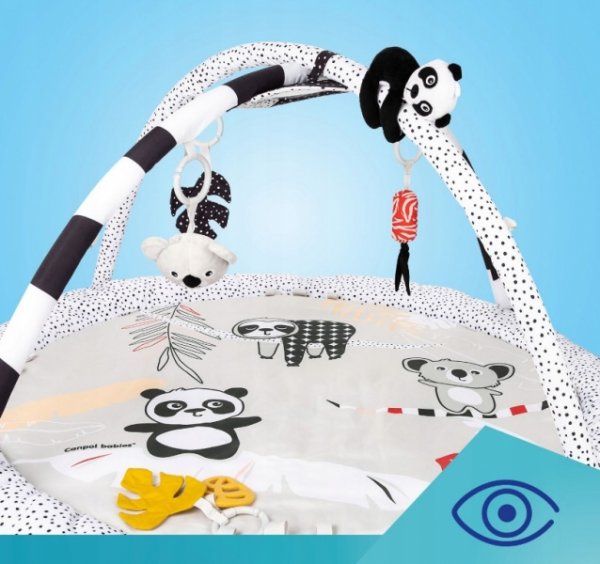 Hračky lze odejmout a dát si je hrát: 2 chrastící obličeje zvířátek, 2 šustící listy se zrcátkem obklopeným barevnými visačkami a chrastítkem a kousátko, které přinese úlevu při prořezávání zoubků, velké odnímatelné zrcátko, které lze připevnit kamkoli a kdy miminko vyroste povzbudí k ležení na bříšku a pandu s pískáním a tlapkami na suchý zip, díky kterým je můžete spojit a omotat kolem čelenky podložky nebo příčky dětské postýlky. Všechny tyto interaktivní prvky podporují rodiče ve smyslovém tréninku dítěte, což pozitivně ovlivňuje jeho emoční a kognitivní vývoj.