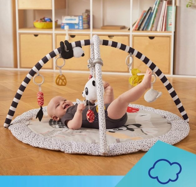 Vzdělávací podložka se 6 hračkami, které povzbuzují dítě k aktivitě a natahují se na ně, pomáhá rozvíjet motoriku, posiluje svaly a procvičuje manuální dovednosti. Hračky jsou zavěšeny na obloucích, které lze snadno sejmout a podložku umýt nebo vzít s sebou kamkoli, kde chcete vytvořit dětský prostor a zajistit tak bezpečný a čistý kus podlahy.