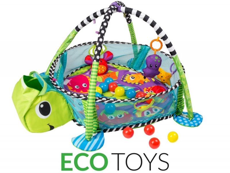 Vzdělávací hrací deka s 30 míčky Eco Toys - Želvička