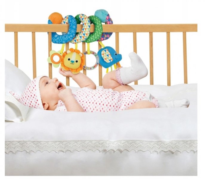 Hračku lze snadno připevnit k postýlce nebo rukojeti kočárků.