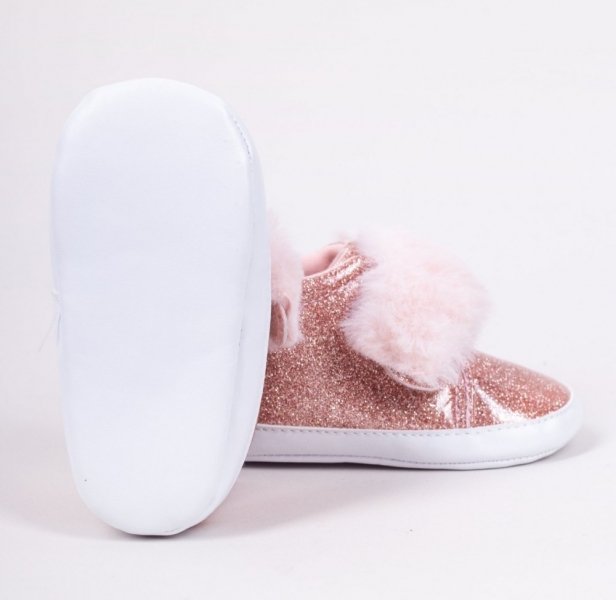 YO ! Kojenecké boty/capáčky lakýrky Girl s kožešinou - růžový
