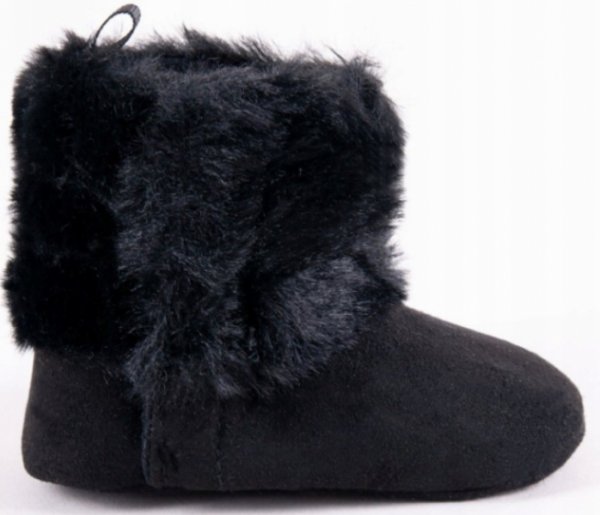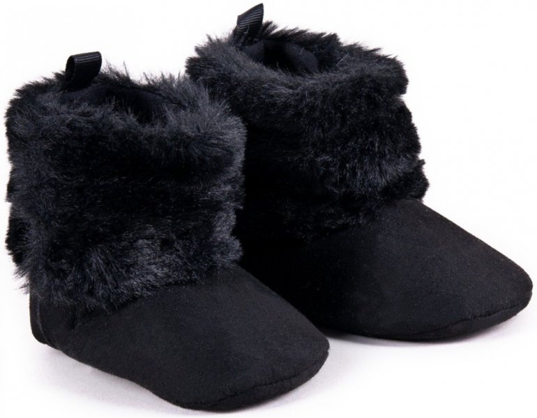 YO ! Kojenecké semiškové capačky/botičky s kožíškem - černé, vel. 0/6 m - 56-68 (0-6 m)