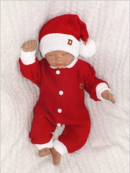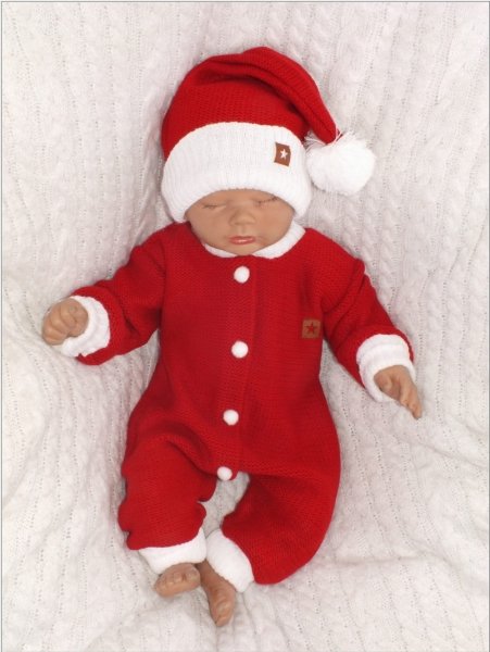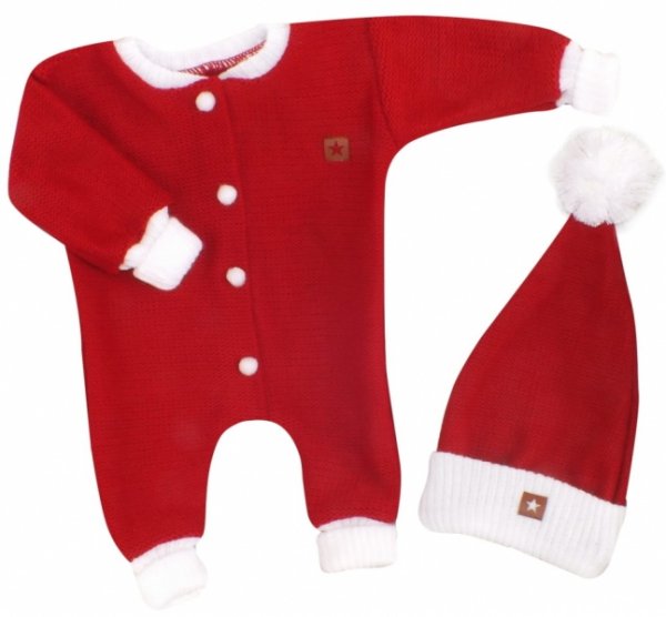 Z&Z 2-dílná sada Pletený overálek s kapucí + čepička Baby Santa