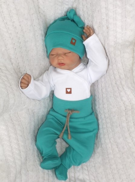Z&Z 3-dílná soupravička body, polodupačky s provázkem a čepička - zelená