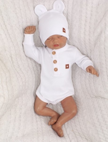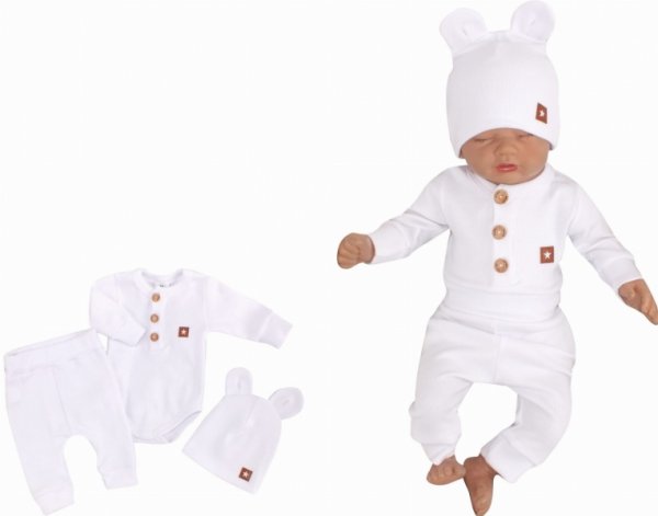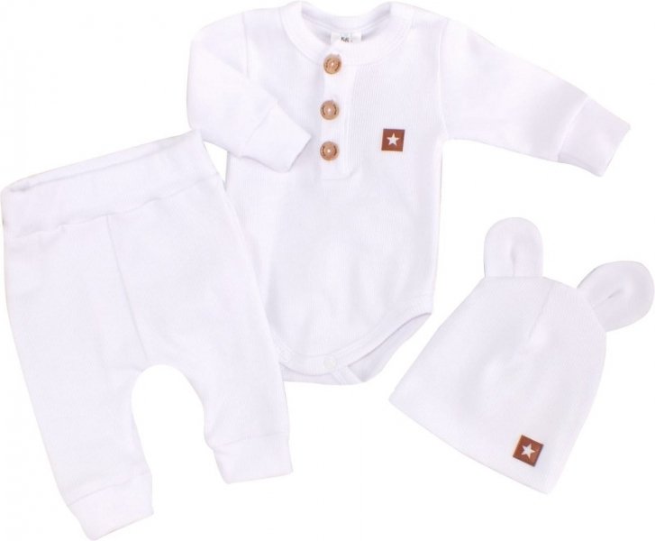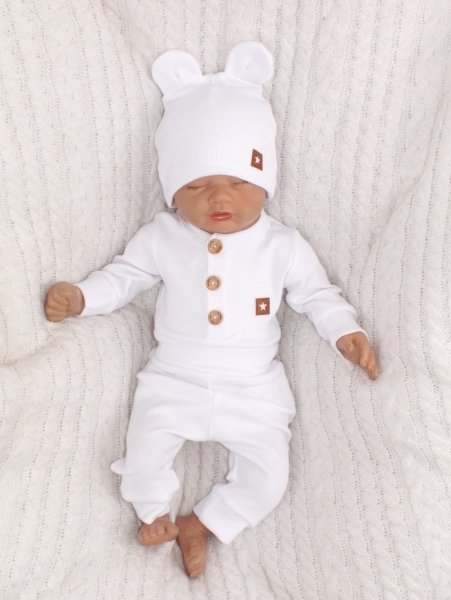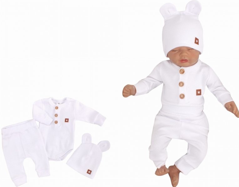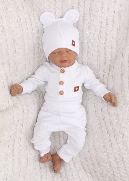 Z&Z 3-dílná žebrovaná sada body, tepláčky + čepička s oušky