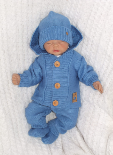 Sada obsahuje:Kabátek, tepláčky, čepička a botičky.