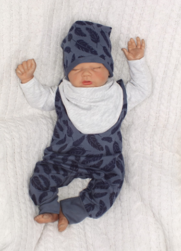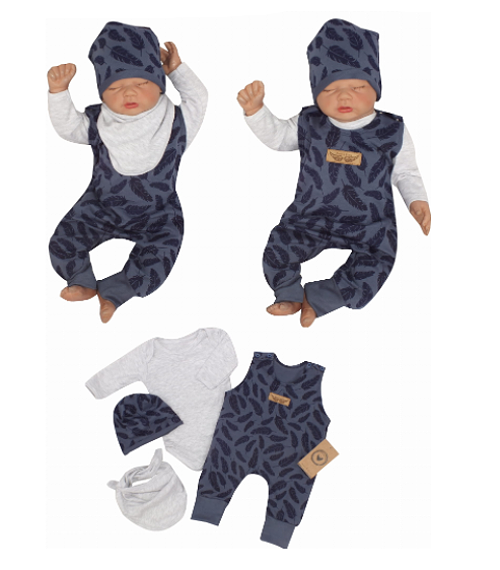 Sada obsahuje: bodyčko, láclové kalhoty, čepičku a šátek.