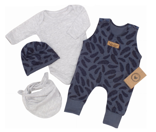 Z&Z 4-dílná soupravička body, láclové kalhoty, čepička + šátek