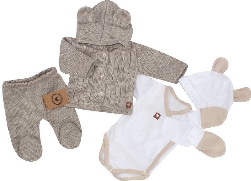 Z&Z 5-dílná kojenecká soupravička pletená do porodnice - béžová