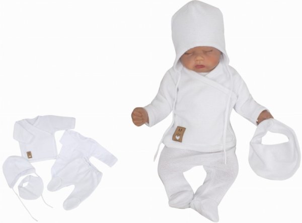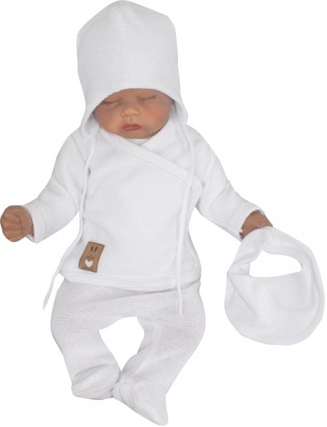 Materiál: body - 100% bavlna, čepička, šátek, polodupačky a svetřík - 35% akryl, 65% bavlna