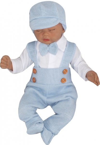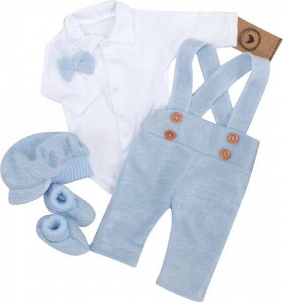 Z&Z 5-dílná pletená sada Boy, body, kalhoty, čepička, motýlek, botičky