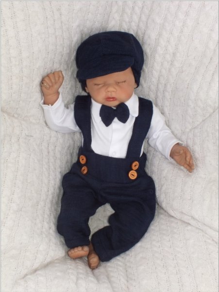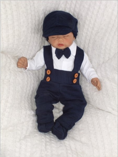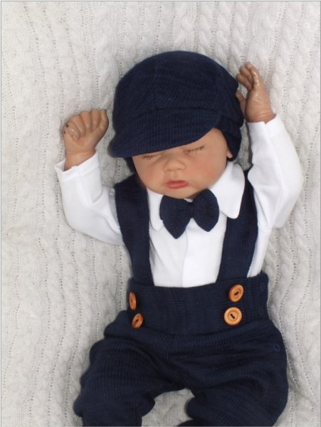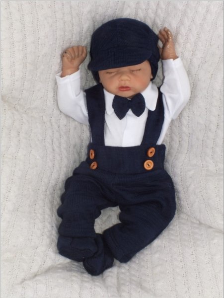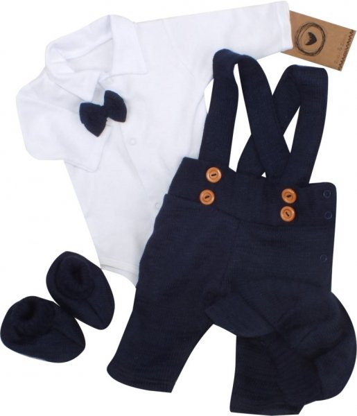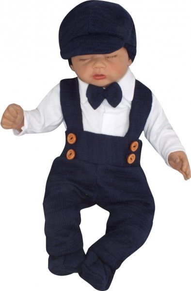 Z&Z 5-dílná pletená sada Boy, body, kalhoty, čepička, motýlek, botičky, granát