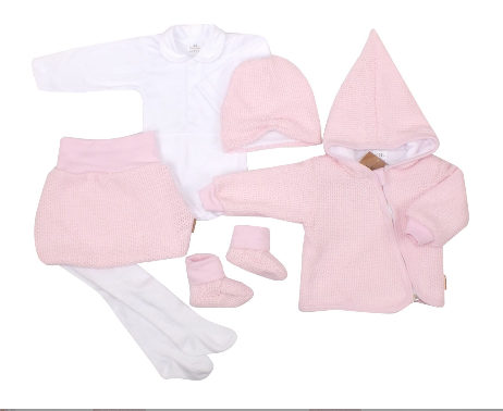 Z&Z 6-dílná sada kabátek, body, sukně, punčochy, botky, čepička - růžová