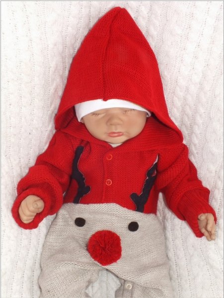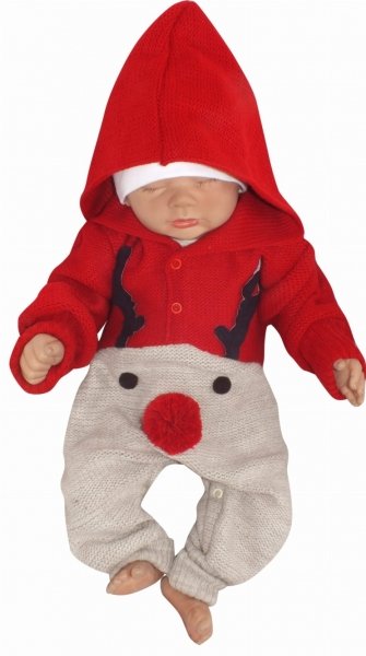 Z&Z Dětský pletený Vánoční overálek s kapucí a knoflíčky Baby Sob