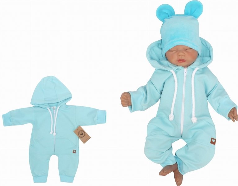 Z&Z Dětský teplákový overálek s kapucí, tyrkys - 56 (1-2m)