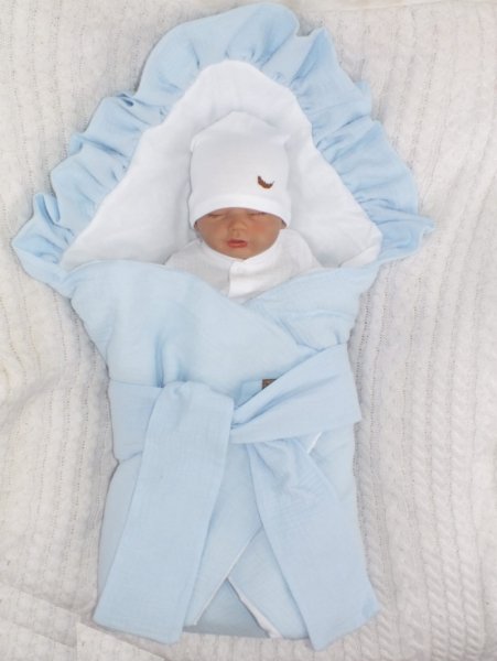 Z&Z Luxusní mušelínová zavinovačka s volánkem, modrá