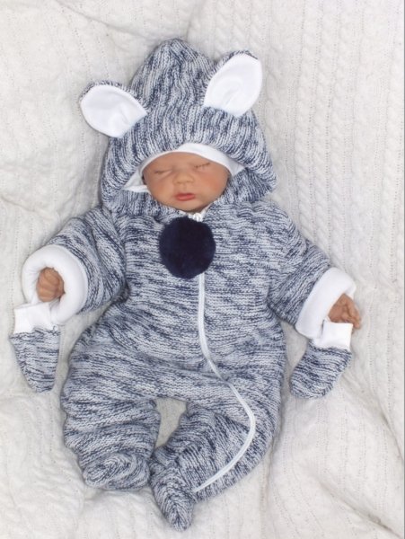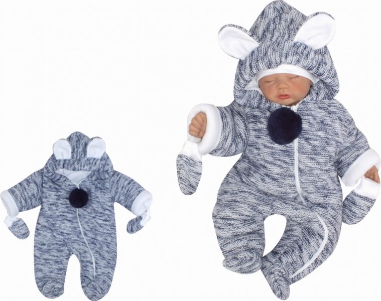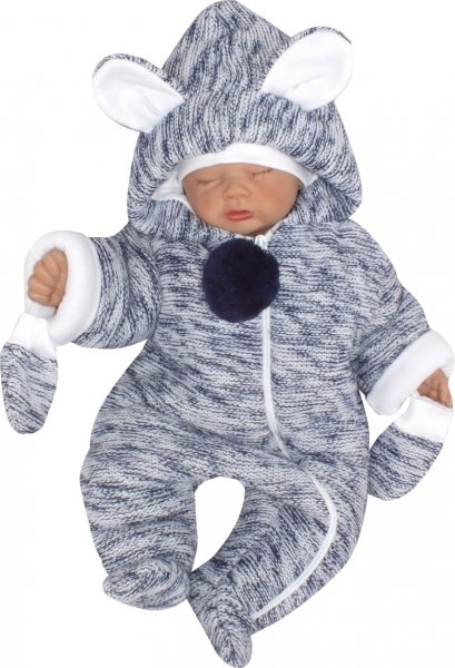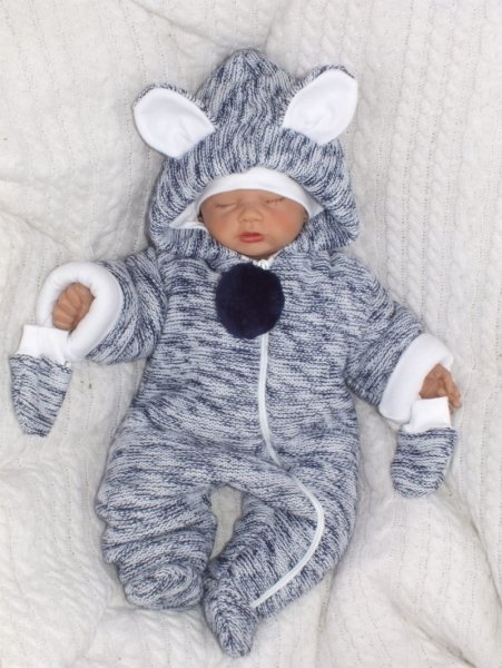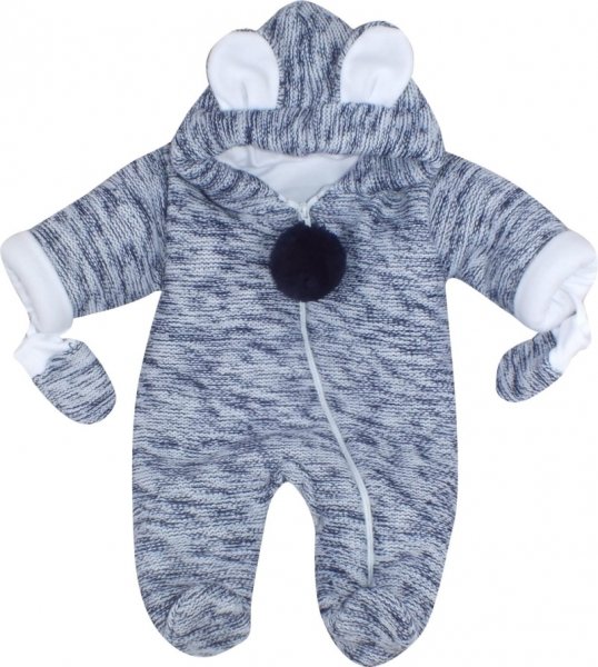 Z&Z Oteplená pletená kombinéza s kapucí a oušky + rukavičky