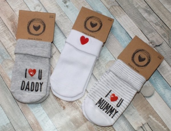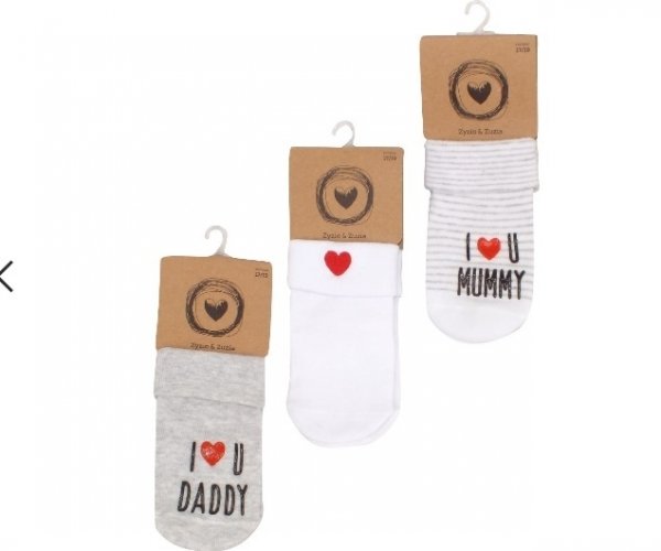 Z&Z Sada 3 ks -ponožky I love, bílé/šedé - 0/4měsíců