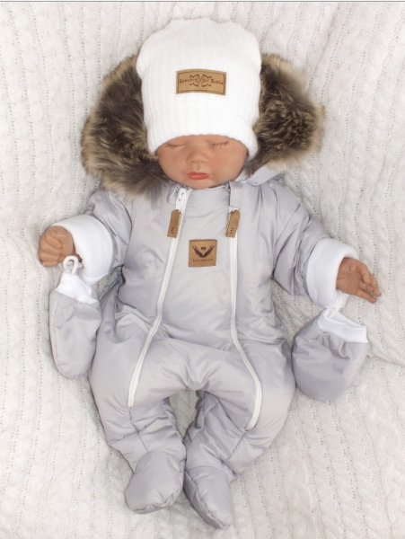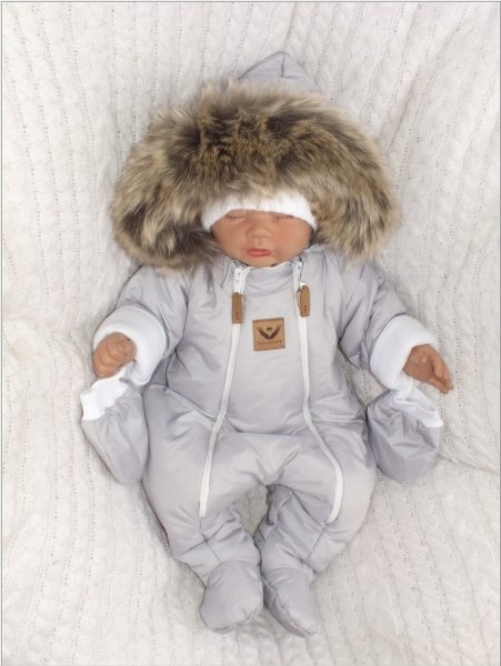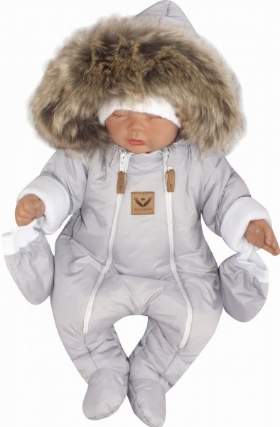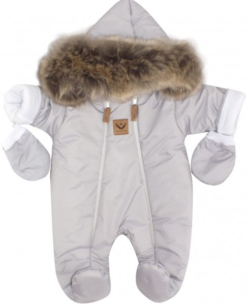 Z&Z Zimní kombinéza s dvojitým zipem, kapucí a kožešinou + rukavičky, Angel