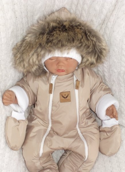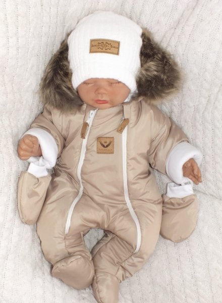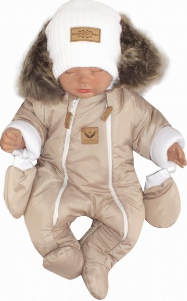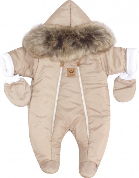 Z&Z Zimní kombinéza s dvojitým zipem, kapucí a kožešinou + rukavičky, Angel