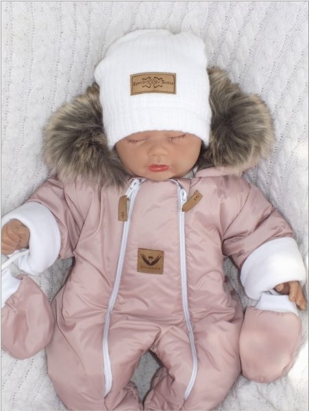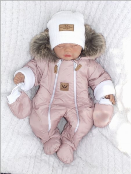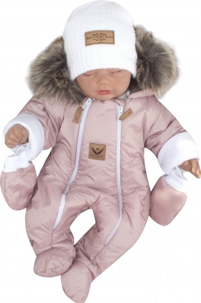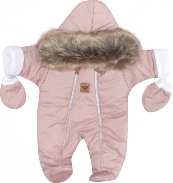 Z&Z Zimní kombinéza s dvojitým zipem, kapucí a kožešinou + rukavičky, Angel