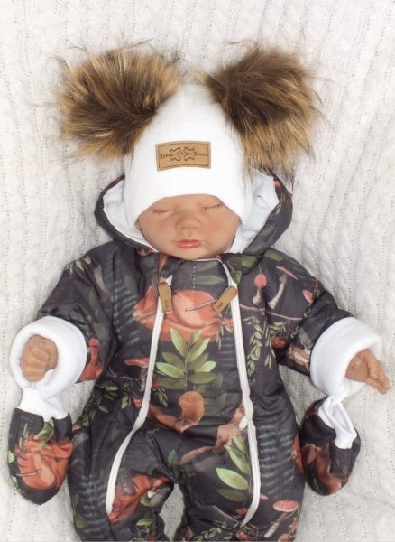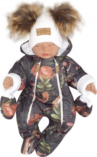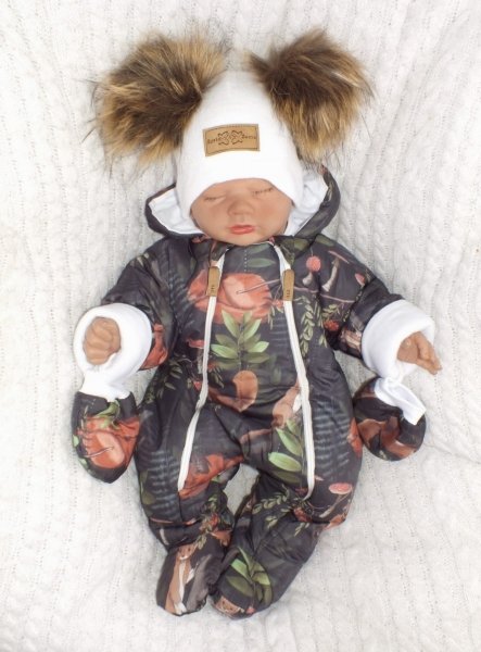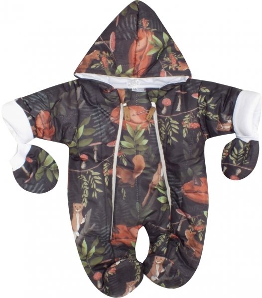 Z&Z Zimní kombinéza s dvojitým zipem, kapucí a kožešinou + rukavičky, Zvířátka