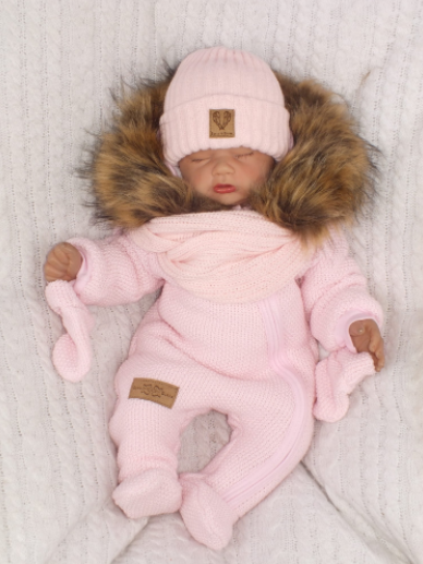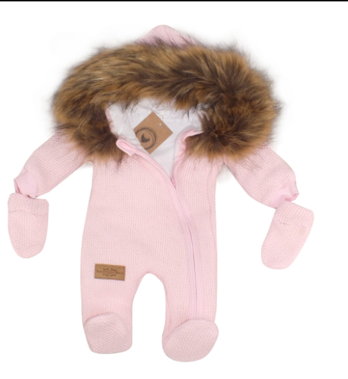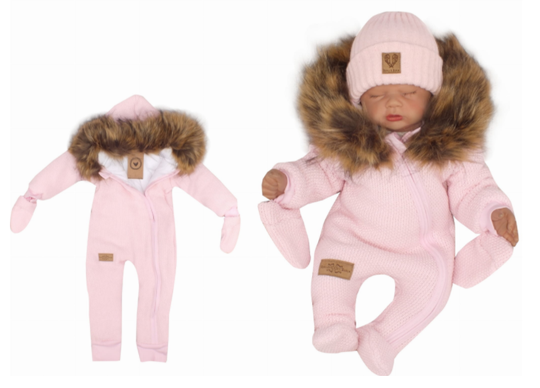 Z&Z Zimní kombinéza s kapucí a kožešinou + rukavičky