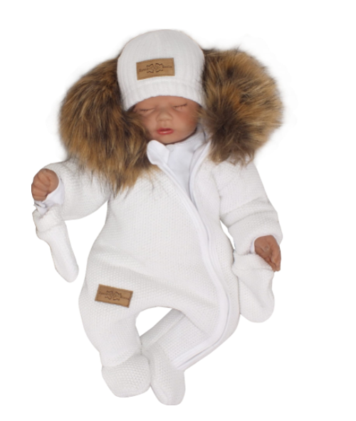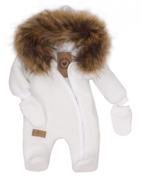 Z&Z Zimní kombinéza s kapucí a kožešinou + rukavičky