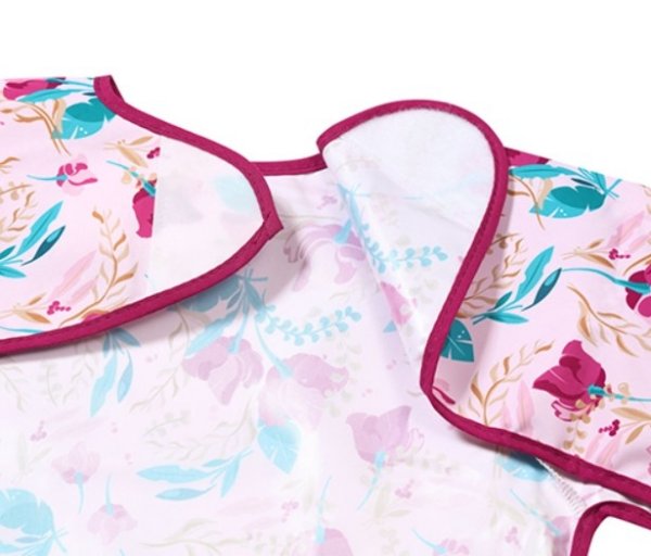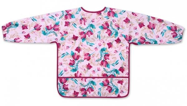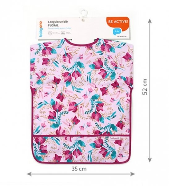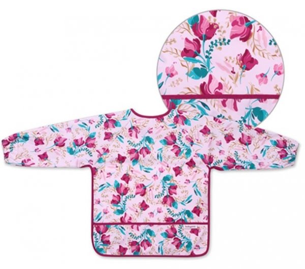 Zástěrka, bryndák nepromakavý s dlouhým rukávem a kapsíčkou BabyOno - Floral, růžová