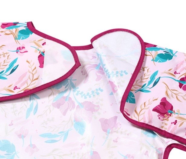 Bryndáček s dlouhým rukávem je praktická zástěra, která ochrání oblečení vašeho dítěte. Při jídle ochrání nejen přední část oblečení, ale i rukávy, které se „rády“ ušpiní. Díky pružným gumičkám dobře přilne i k malým dětským ručkám. Bryndáček s rukávy má navíc praktickou kapsu na drobky, kam padají zbytky jídla.