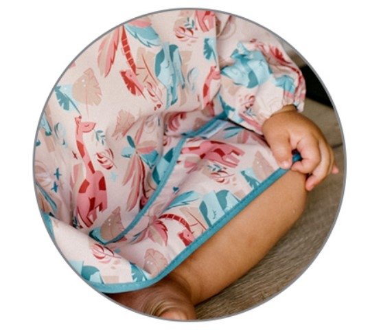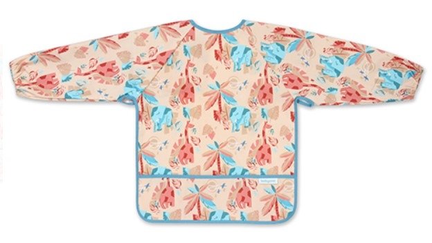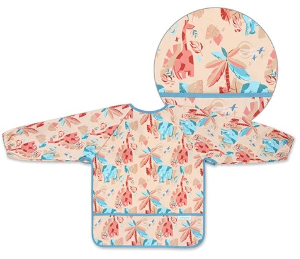 Bryndáček s dlouhým rukávem je praktická zástěra, která ochrání oblečení vašeho dítěte. Při jídle ochrání nejen přední část oblečení, ale i rukávy, které se „rády“ ušpiní. Díky pružným gumičkám dobře přilne i k malým dětským ručkám. Bryndáček s rukávy má navíc praktickou kapsu na drobky, kam padají zbytky jídla.